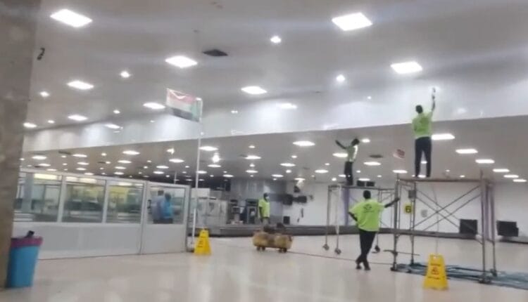 متابعات- الزاوية نت- تداول رواد مواقع التواصل الاجتماعي في السودان مقطع فيديو يظهر صالة الوصول في مطار الخرطوم حيث تجري بعض أعمال الصيانة فيها.