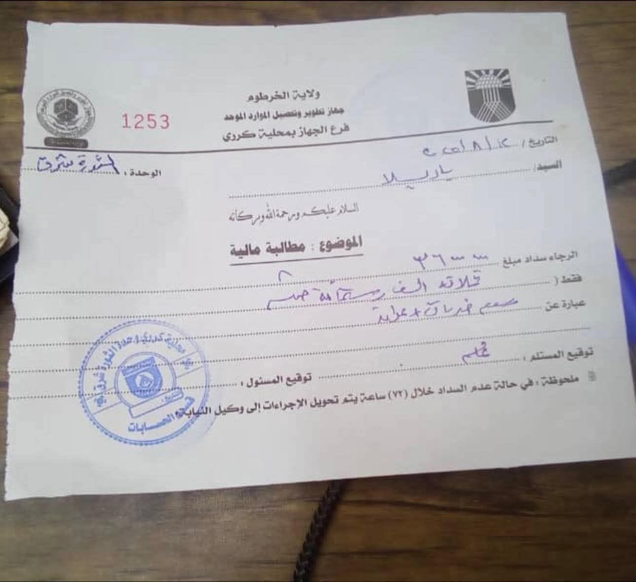 متابعات- الزاوية نت- فرضت حكومة ولاية الخرطوم، عبر جهاز تطوير وتفصيل الموارد الموحد فرع محلية كرري، رسومًا على التجار بمبلغ 3 ملايين و600 ألف جنيه، رسوم خدمات وعوائد على أصحاب المحلات، وامهلتهم 72 ساعة للدفع أو تحويلهم للنيابة.