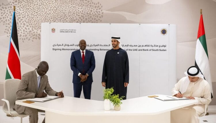 وأقرت الاتفاقية بتبادل الخبرات والدعم الفني وتدريب موظفي مصرف جنوب السودان عبر معهد الإمارات للتمويل.