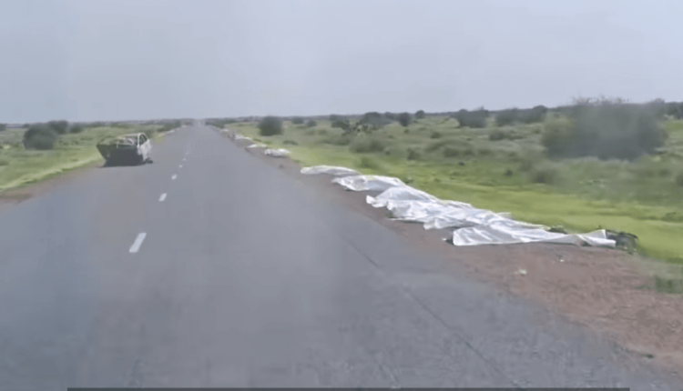 متابعات- الزاوية نت- قال القيادي في المقاومة الشعبية المحامي د. الناجي مصطفى، إن أكثر من 7 آلاف جثة ملقاة على يمين وشمال طريق الصادرات –الخرطوم – بارا – الأبيض، على مد البصر لمسافة حوالي 200 كيلومتر، حيث قامت وزارة الصحة و الهلال الأحمر السوداني بتغطيتها بأكياس طبية حتى لا تتلوث البيئة.
