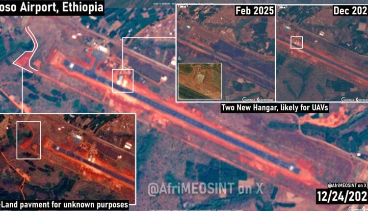 متابعات- الزاوية نت- أظهرت صورة الأقمار الاصطناعية، أول دليل مرئي على نشاط عسكري في حدود إثيوبيا مع السودان، عبارة عن بناء حظيرتي طائرات جديدتين في مطار “أصوصا” عاصمة إقليم “بني شنقول- قمز” بالقرب من الحدود السودانية، ورجحت مصادر أن أنهما مخصصتان لاستيعاب الطائرات المسيرة المقاتلة (UCAVs) كما تجري حاليًا أعمال إنشائية إضافية في الموقع، تشمل تحسينات وتجهيزات للأرضية.