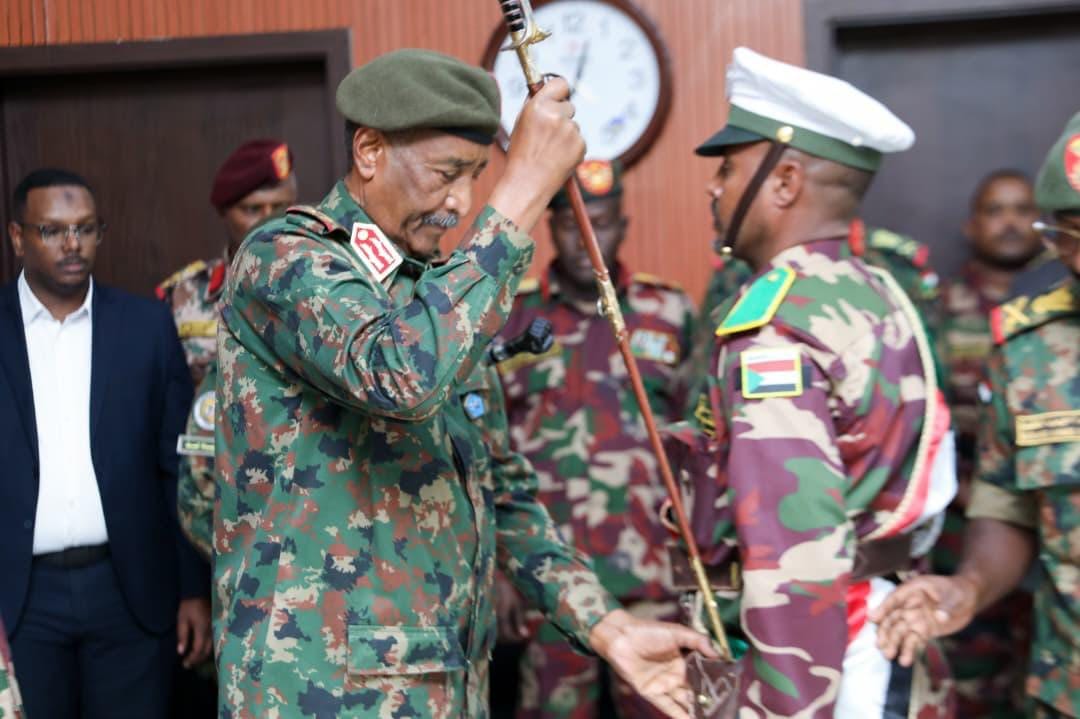 وقال رئيس مجلس السيادة “القسم الذي أداه المتخرجون يضاعف من أعبائهم في صون وحدة تراب الوطن وحماية مقدراته ولفت إلى أن المخاطر الحقيقية التي تحيط بالبلاد تتطلب تطبيق مبدأ الأمن مسؤولية الجميع.