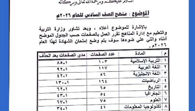 وبحسب التعميم الصادر بتاريخ 15 أبريل 2026م، تم تحديد المقررات الدراسية لكل مادة، حيث شملت مقررات الصف الأول المتوسط تدريس أجزاء محددة من المناهج، من بينها التربية الإسلامية من الوحدة الأولى حتى صفحة (127)، واللغة العربية من الوحدة الأولى حتى صفحة (146)، فيما تقرر تدريس جميع وحدات اللغة الإنجليزية عدا الوحدة السابعة والثامنة، إلى جانب تدريس كامل كتاب الرياضيات عدا باب الثنائيات.