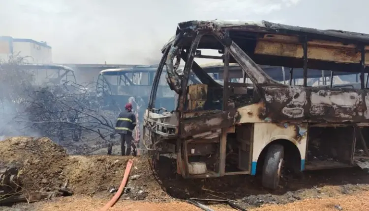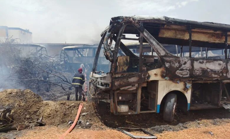 حريق يقضي على 10 بصات سياحية في ورشة بمدينة الدامر