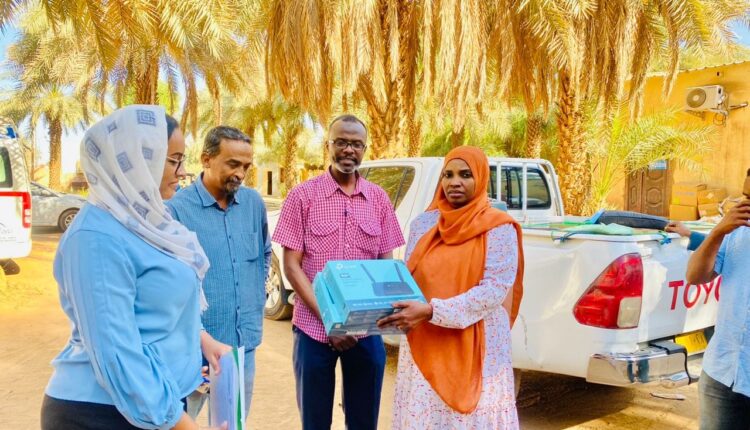 سلم وفد الوكالة القومية للرعاية الطارئة والإسعاف، معدات مركز الاتصال ونظام الإحالة للإسعاف لمدير عام وزارة الصحة بولاية نهر النيل، شمال السودان.