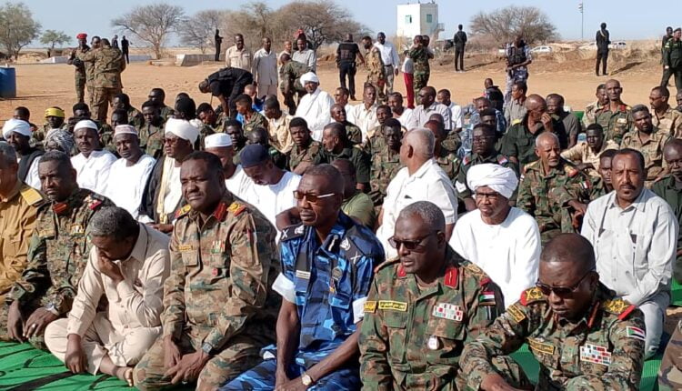 فيما دعا خطيب صلاه العيد الشيخ محمد أحمد لأهمية الحفاظ على الوطن والثبات على المبادئ والالتفاف حول القوات المسلحة ومؤازتها والدعوه لها بالنصر ، كما طالب المواطنين لعدم الالتفات للشائعات والأكاذيب التي يروج لها إعلام المليشيا المتمردة واعوانها .