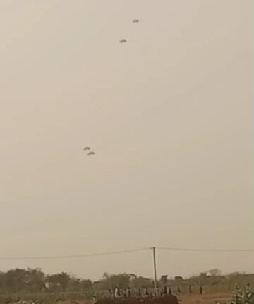 متابعات- الزاوية نت- أسقط الطيران الحربي التابع للجيش السوداني، اليوم الخميس، إمدادات عسكرية عبر الإسقاط الجوي، للقوات المسلحة والقوات المشتركة في مدينة الفاشر بولاية شمال دارفور.