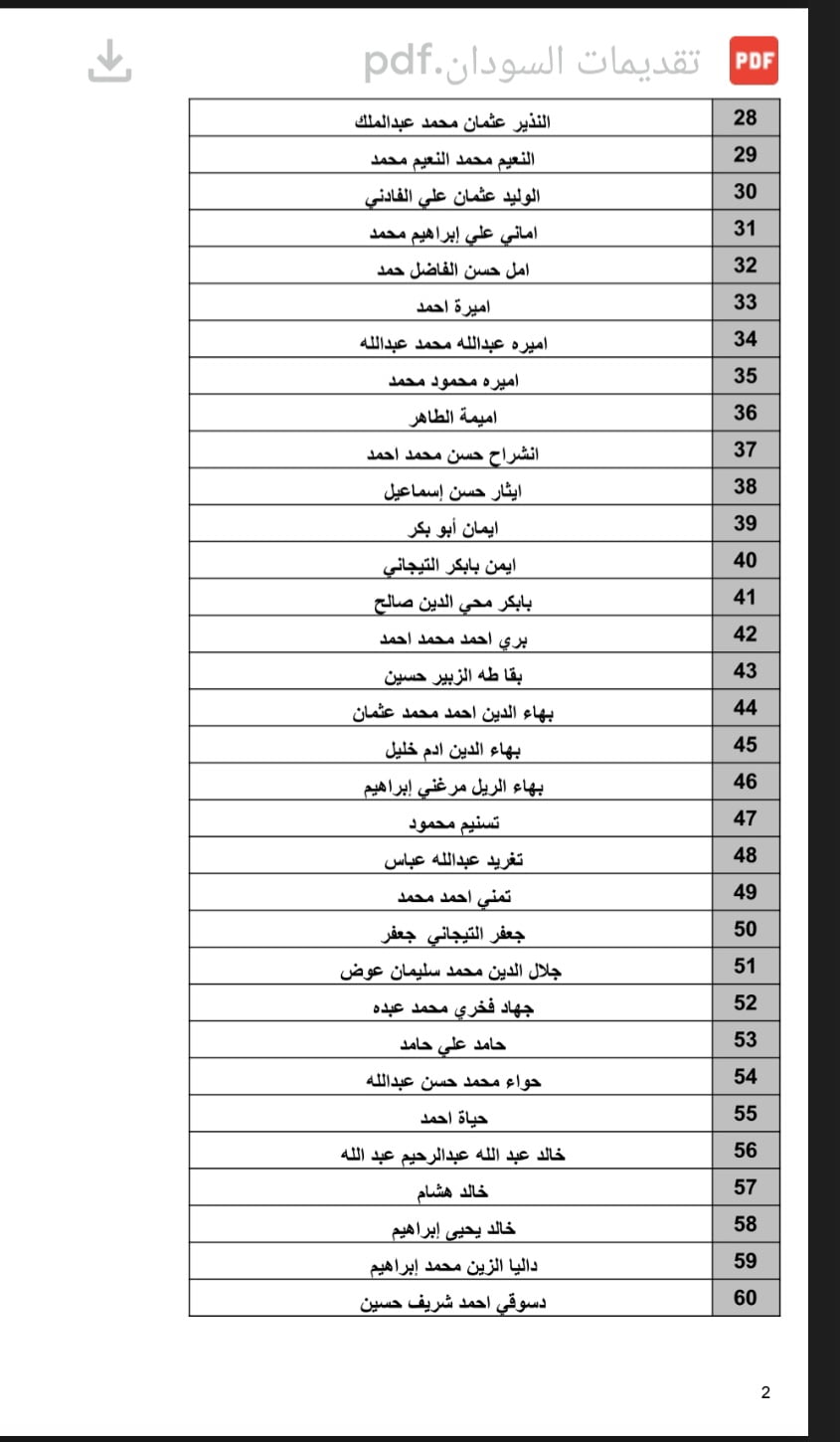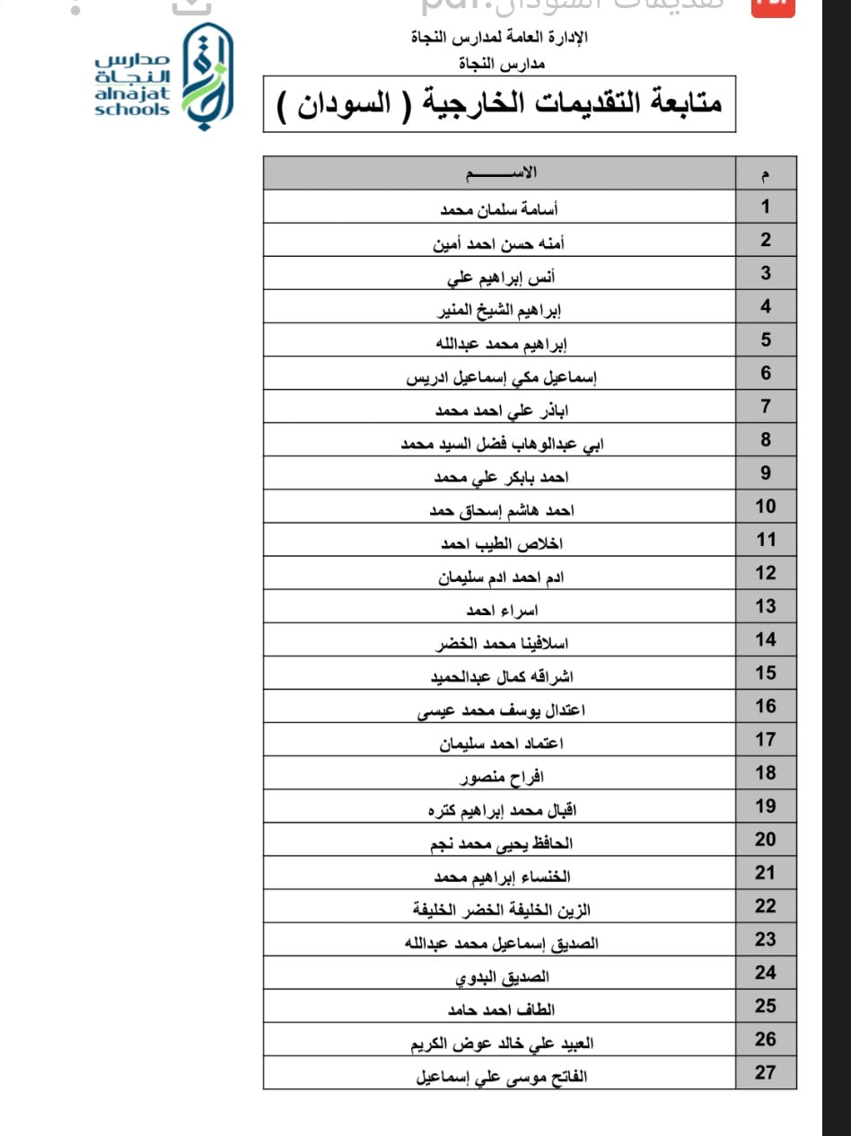 متابعات- الزاوية نت- اصدرت سفارة السودان بالقاهرة، تنويها بالافادة برغبة لجنة اختيار المعلمين للعمل بدولة الكويت (مدرسة النجاة الخاصة) في إعلام المعلمين الآتية أسمائهم حسب الجدول المرفق، بضرورة الحضور لمقر السفارة (8 شارع احمد الشاطوري، الدقي).