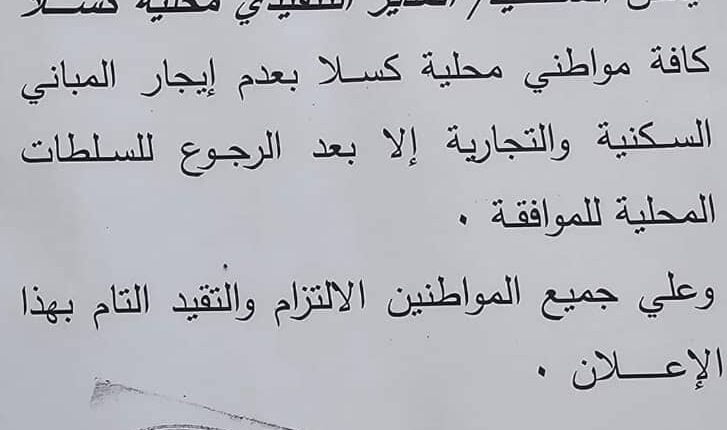 اقتصادالرئيسية قرار صـ.ـادم في كسلا بشأن إيجار المباني السكنية والتجارية بواسطة الزاوية في يوليو 22, 2024 0 شارك متابعات- الزاوية نت- أصدر إدريس محمد علي المدير التنفيذي لمحلية كسلا، قرارًا منع بموجبه كافة مواطني كسلا، عدم إيجار المباني السكنية والتجارية إلا بعد الرجوع للسلطات المحلية للموافقة. والزم القرار جميع المواطنين الالتزام والتقيد التام بهذا الإعلان. كسلا 0 شارك