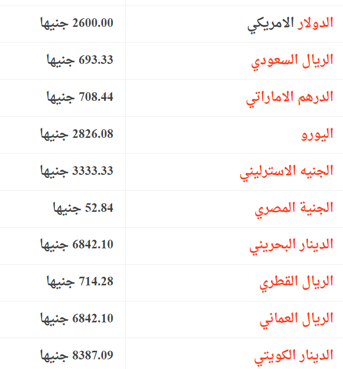 واستقر سعر الدولار عند 2600 جنيه للشراء مقابل 2650 جنيه للبيع ما تباين في الأسعار من مدينة لأخرى.