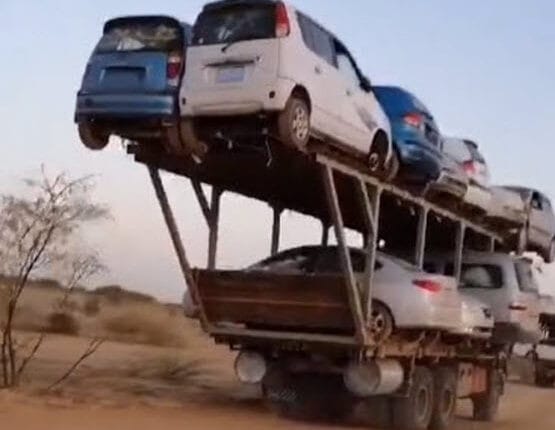شاهد/ الجيش السوداني يضبط جرارات تحمل سيارات مسروقة من الخرطوم
