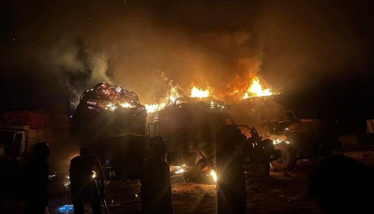 وهناك أنباء عن سقوط ضحايا وجرحى حيث استهدف القصف شاحنات تجارية ما أدى إلى احتراق بعضها.