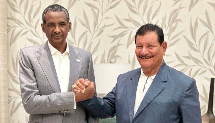 متابعات- الزاوية نت- نشرت حسابات موالية للدعم السريع، صورة حديثه لقائد الدعم السريع محمد حمدان حميدتي، مع الزعيم بقبيلة الرشايدة مبروك مبارك سليم، كأول ظهور للأول في نيروبي التي تشهد فعالية تكوين حكومة موازية.