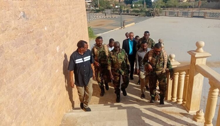 الزيارة بدأت بالوقوف على نشاط قافلة الإسناد القادمة من الولاية الشمالية بمشاركة شباب الكشافة إذ يتركز العمل في نظافة شارع المعونة على طول امتداده داخل بحري.