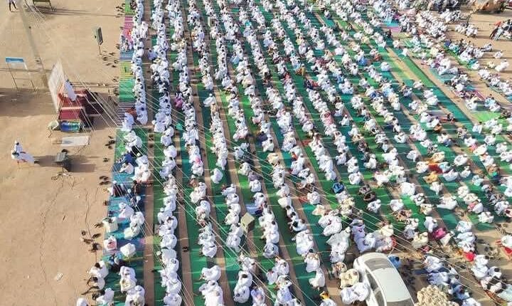 متابعات- الزاوية نت- أدى السودانيون صلاة عيد الفطر  في عدد من المدن التي تعتبر آمنة في السودان، في ظل معاناة يعيشها الكثيرون في معسكرات النزوح واللجوء مع وجود مدن أخرى تحت القصف والحوار.