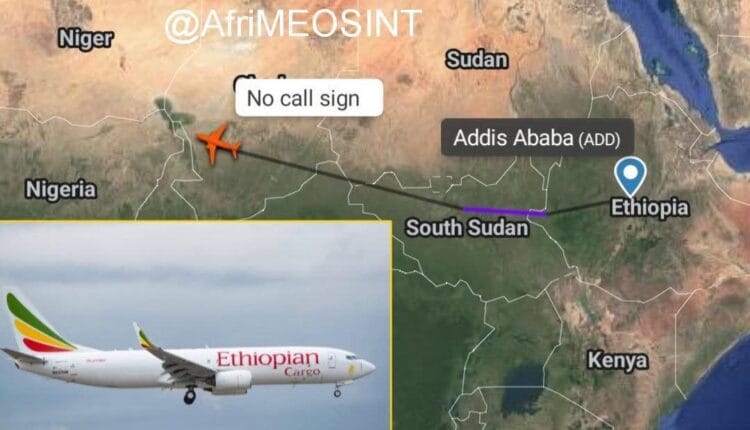 متابعات- الزاوية نت- رصد برنامج تتبع حركة الطيران، رحلة وصفت بالمشبوهة قام بها الطيران الإثيوبي عبر طائرة شحن من نوع Boeing 737-800(F) تابعة للخطوط الجوية الإثيوبية “رقم التسجيل (N837DM/ET-AWC) من مطار أديس أبابا بول في إثيوبيا إلى نجمينا في تشاد.