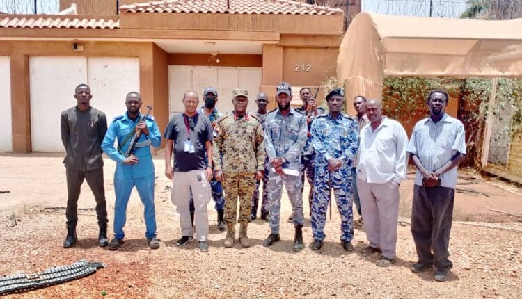 وبحسب المكتب الصحفي للشرطة أن الملحق العسكري تفقد مباني السفارة بضاحية بري بالخرطوم ومنزل السفير بحي المنشية يرافقه اللواء شرطة قاسم أمين كاكتلا مدير الإدارة العامة لتأمين المرافق والمنشآت بعد استلام المبني عقب تحرير ولاية الخرطوم من قبضة المليشيا الإرهابية المتمردة.
